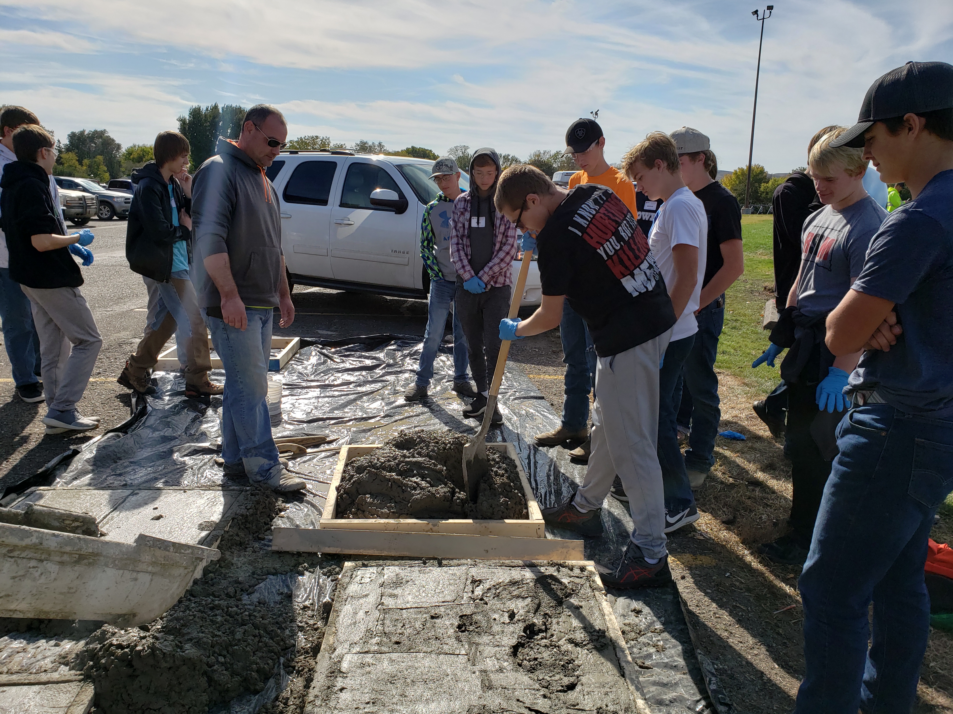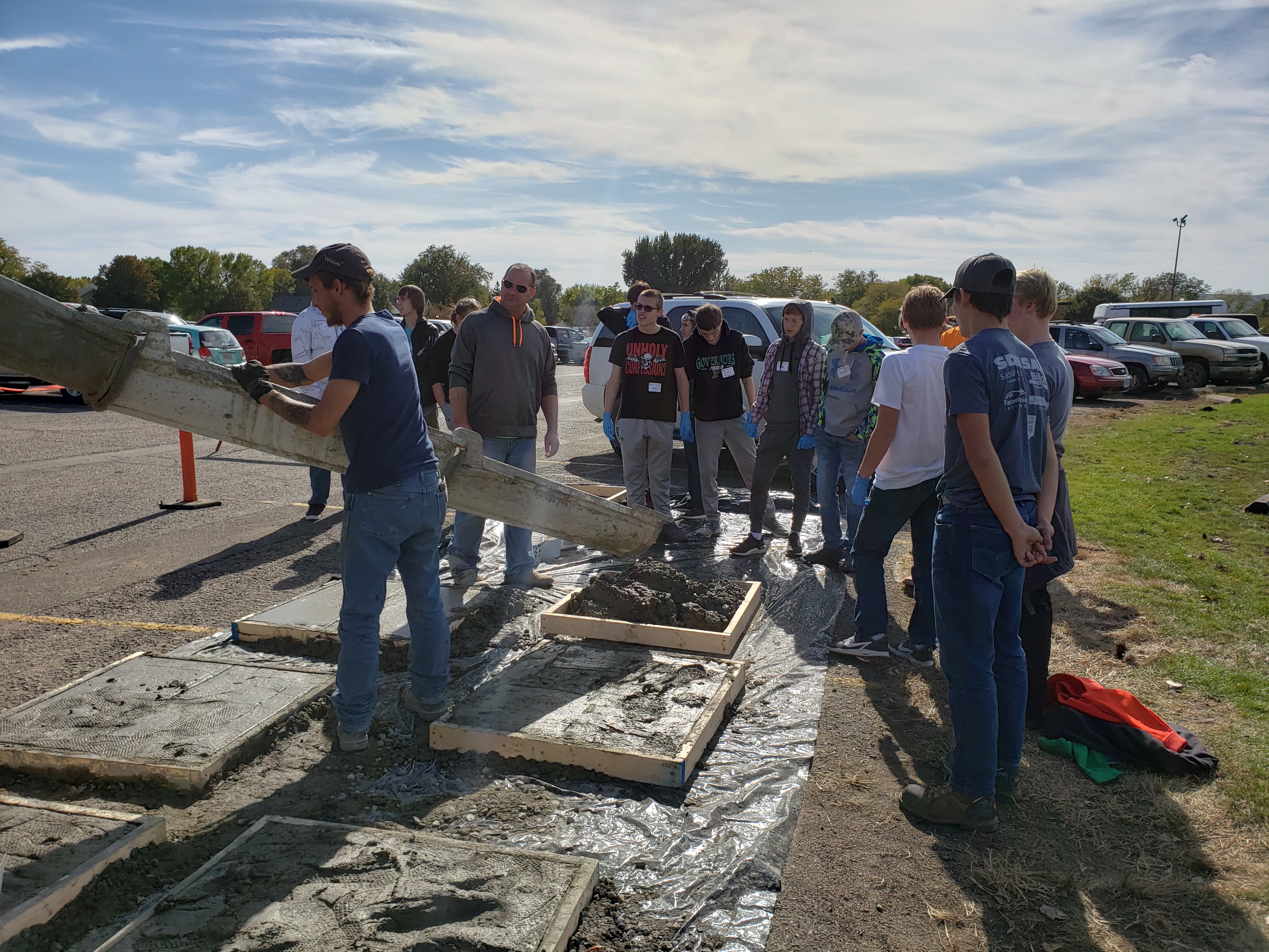 On October 17th AGC of SD had their Annual Construction Days at T.F. Riggs High School in Pierre. Morris was a participant again this year to teach the kids about the difference between concrete and cement.